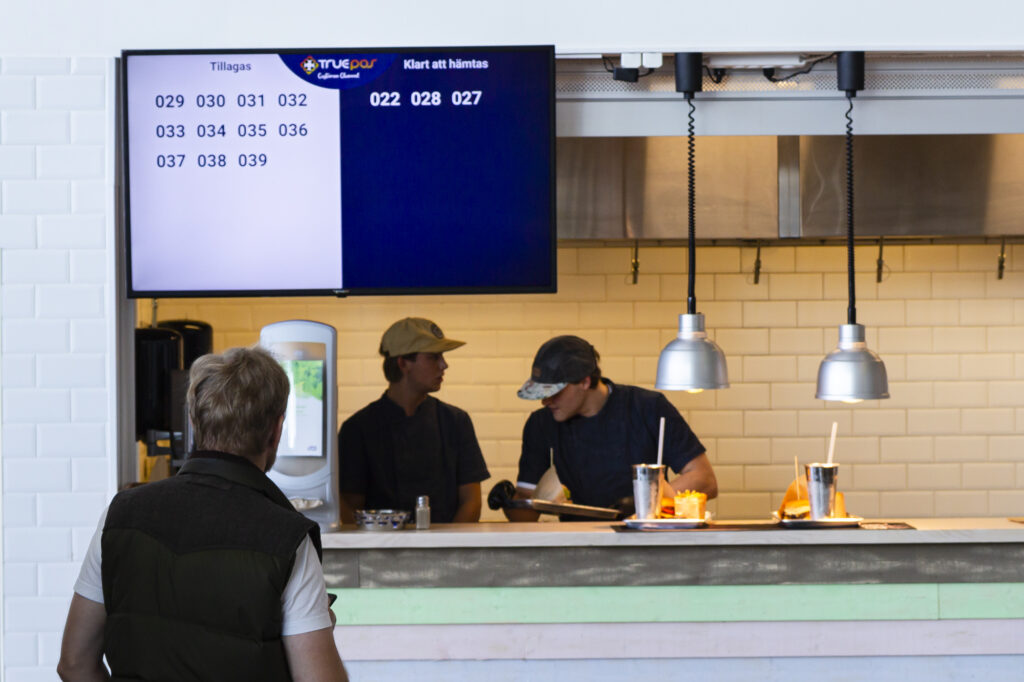 Bongarna sorteras automatiskt på skärmen efter förrätt, varmrätt och dessert. Servisen kallar fram nästa rätt från en kassa eller terminal när det är dags.