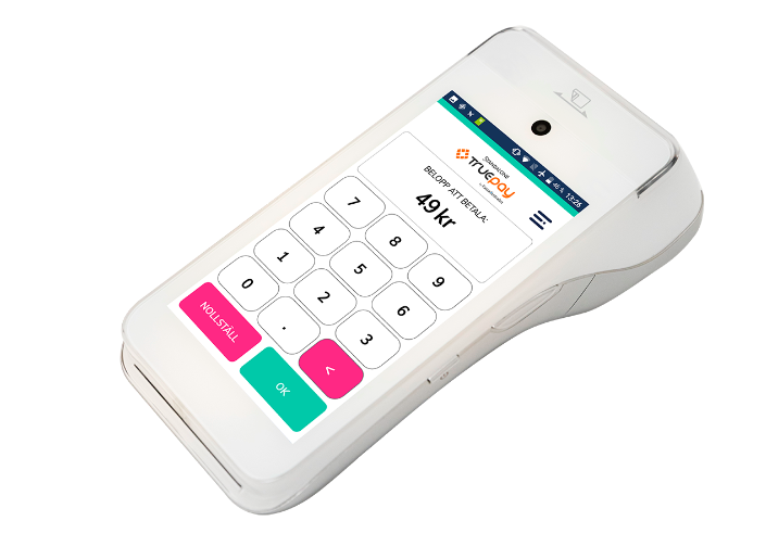 TruePAY’s egna kassakopplade kortterminal för en smidigare kassaupplevelse. Att ha samma leverantör till kortterminalen som till kassan innebär en enda support för hela betalsystemet. Den kassakopplade kortterminalen hanterar alla sorters betalningar (chip, kontaktlöst och mobila plånböcker). Den har en stor touchskärm och kan ta flera kort på samma köp. Självklart finns tillhörande stativ.